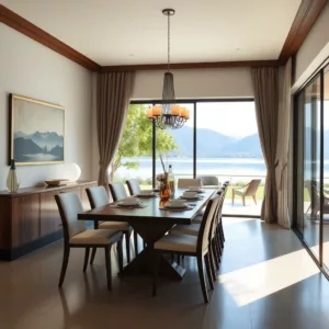 Dekorationen sollten reduziert eingesetzt werden: eine große Zimmerpflanze, ein Kunstwerk mit klaren Formen oder eine dezente Skulptur können den Raum aufwerten. Nutzen Sie moderne Beleuchtung wie Pendelleuchten oder LED-Streifen, um Highlights zu setzen.